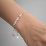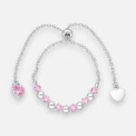 Pulsera ajustable con delicadas esferas y cristales que aportan brillo sutil, destacando un corazón central con circón en tono rosa Francia. Su diseño ajustable ofrece comodidad y versatilidad, convirtiéndola en un accesorio femenino y elegante para realzar cualquier look.